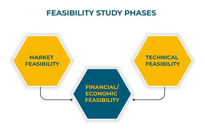 The three phases are market feasibility, financial or economic feasibility, and technological feasibility.